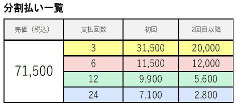 一括払いの場合、税込¥67,925となります。(受注時に反映致します)