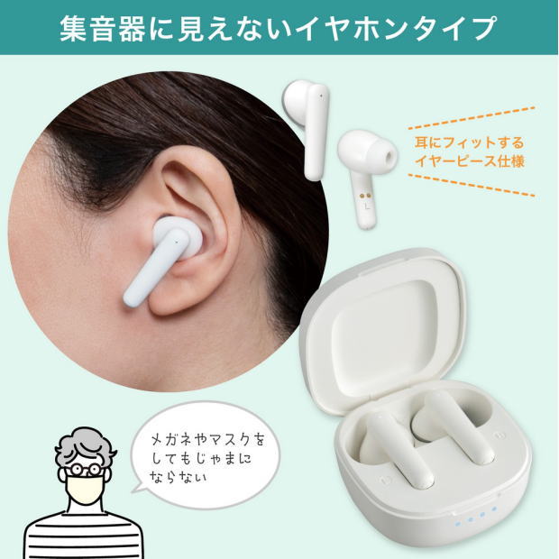 眼鏡・マスクをしても邪魔にならないイヤホン型集音器