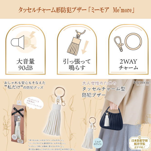 ELPA_大人の女性のための防犯ブザー「Me'more」タッセルチャーム形ミルクホワイトAB-01WH