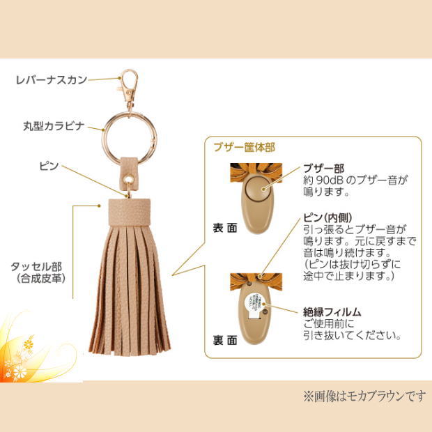 ELPA_大人の女性のための防犯ブザー「Me'more」タッセルチャーム形モカベージュAKB-01BK