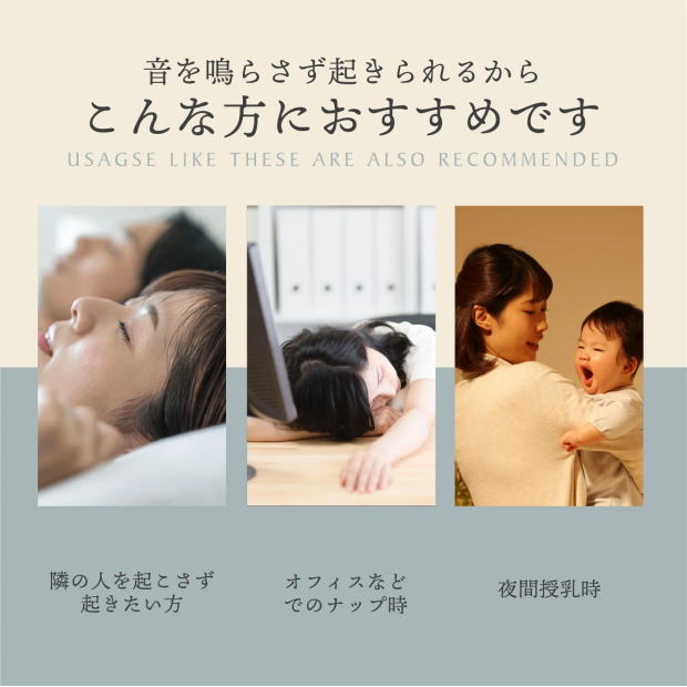 ・睡眠時や仮眠時、周りの人を起こさずに自分だけ起きたいとき