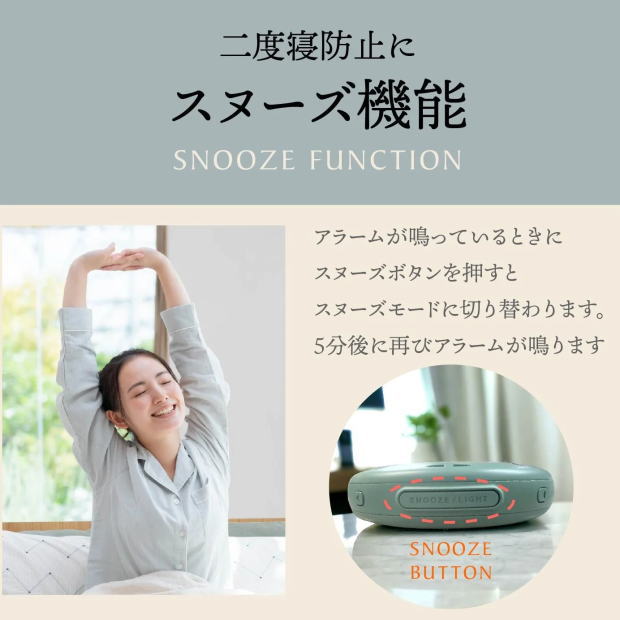 寝ている間の誤操作を防ぐため、アラームを止めるスイッチは本体の横面に付いています。