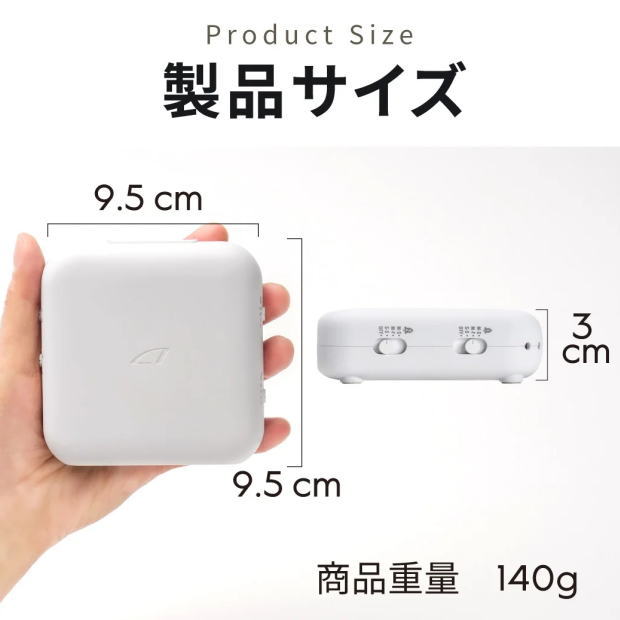 | サイズ/重量 | 高:95mm× 幅:95mm× 奥行:30mm/140g |