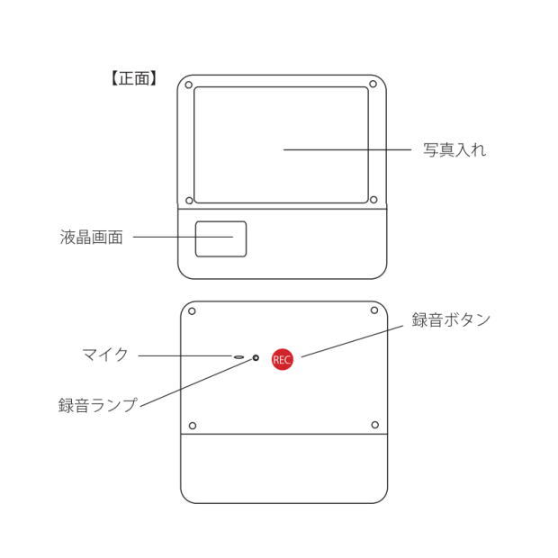 フォトフレーム裏面にある再生ボタンを押して何度でもお聞きいただけます。