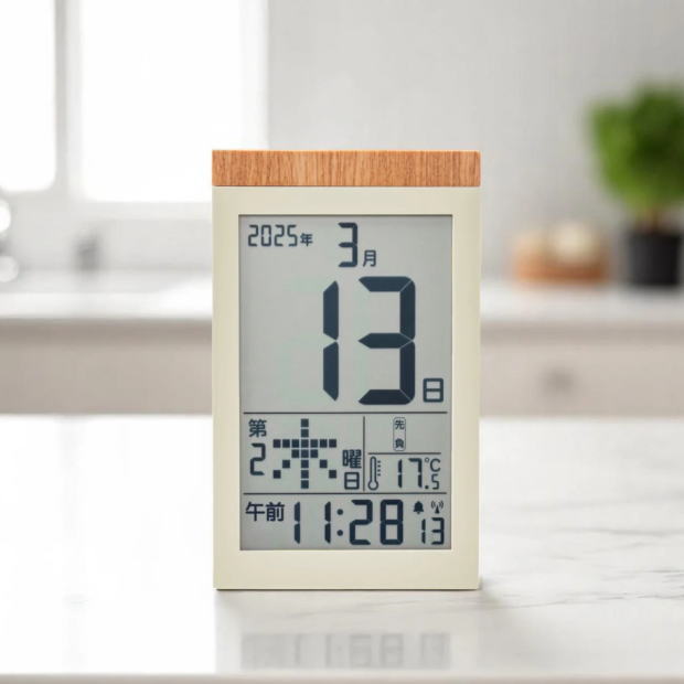 一目で分かる日付表示をメインにしたのカレンダー付の電波時計