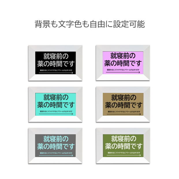 ・スライド操作を行わないとアラームが止まらない設計で、飲み忘れを防止