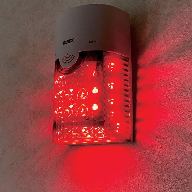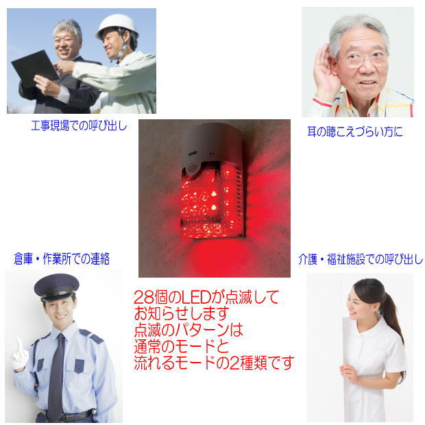 押しボタンを押すと、28個の赤色LEDが眩しく点滅してお知らせしますので、チャイム音が聞こえにくい場合でも確実に気づくことができます。