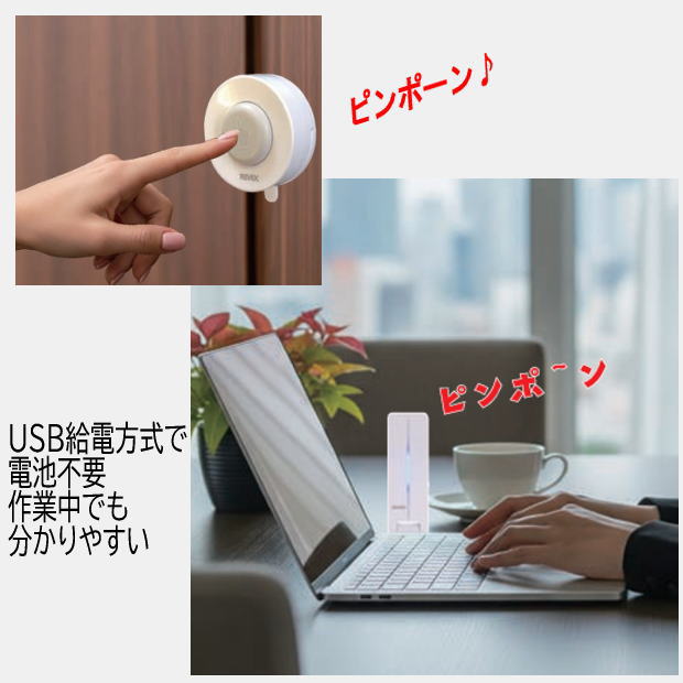 受信機はUSBから電源を供給できるので電池切れがほぼありません。セットするだけで、すぐに使える呼び出しボタンセット