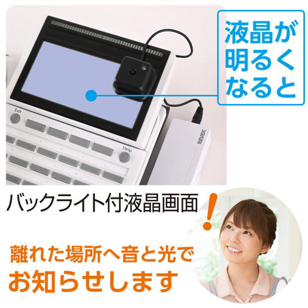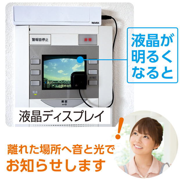 液晶がつくと離れた場所で光やチャイム・音声などでお知らせします